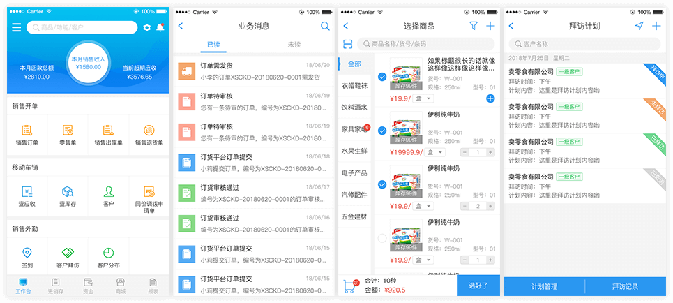 代客下单、移动车销、移动核单、库存盘点,查看库存、往来、资金数据,商城后台处理...手机APP随时随地满足你的业务需要。